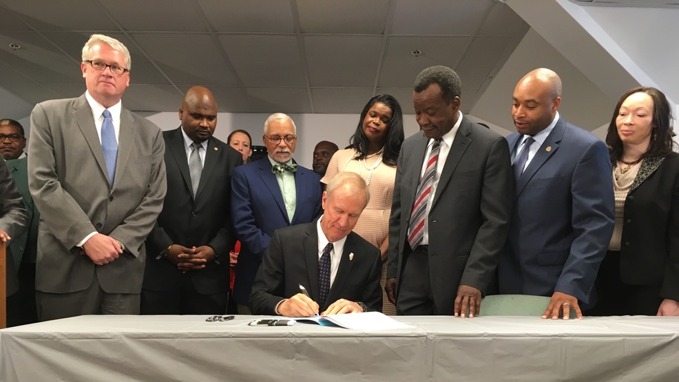 Rauner signed the bill in Chicago surrounded by other lawmakers and the Cook County State's Attorney.